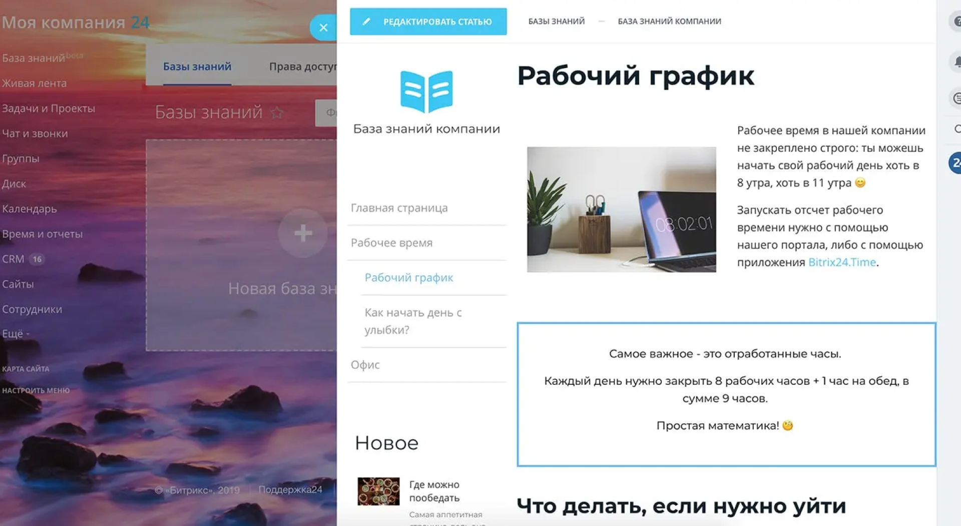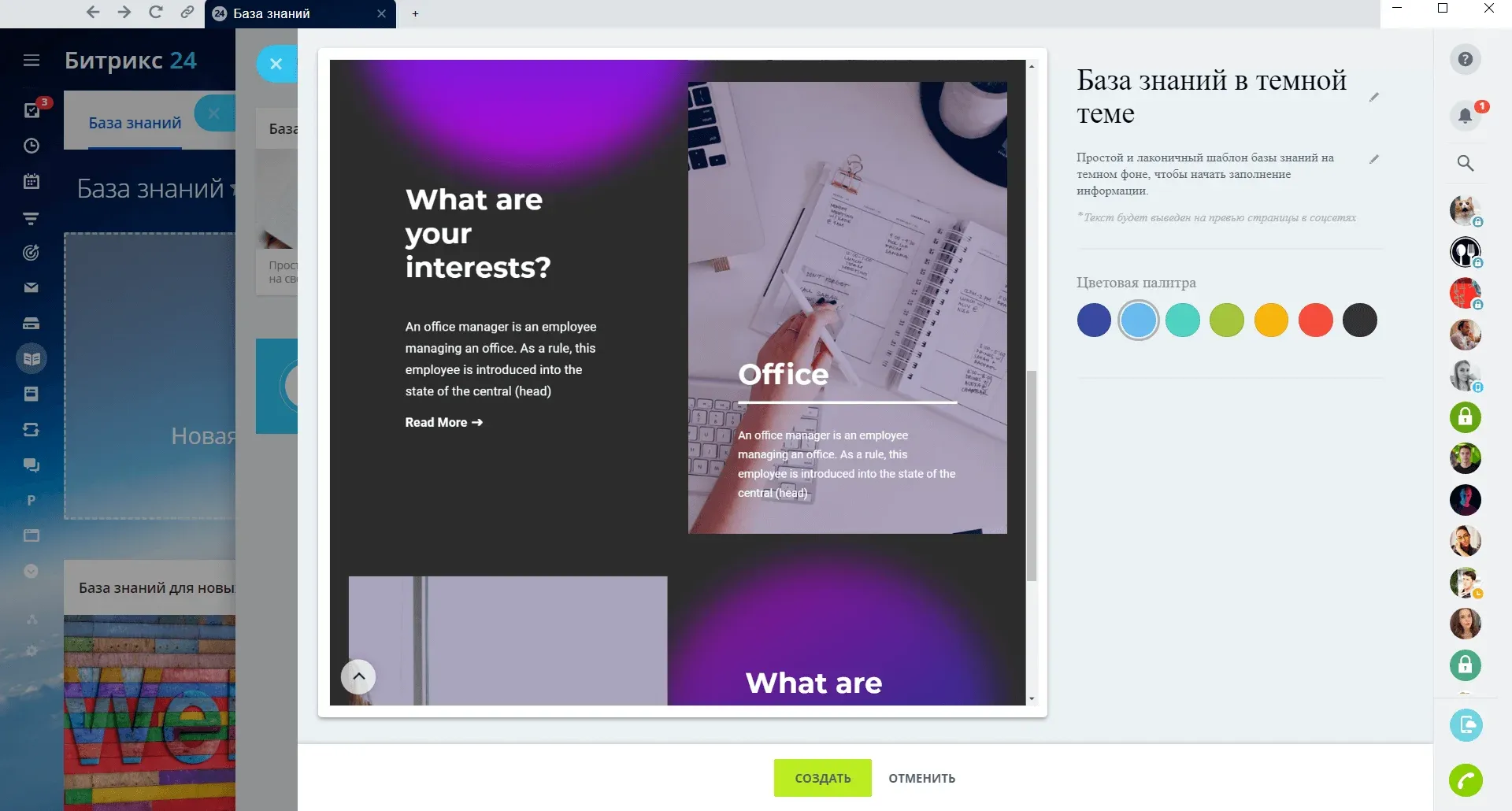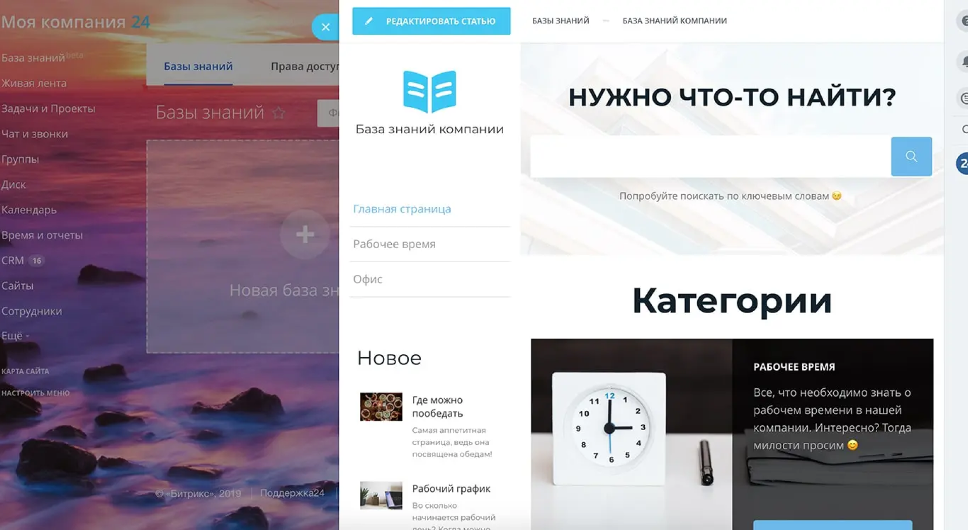 Удобное создание баз знаний внутри компании.